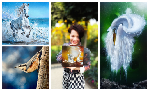 Recently, her artistic approach has evolved to incorporate a blend of abstract and realistic elements, resulting in captivating depictions of birds. These works feature realistic avian forms set against abstract or impressionistic backgrounds, often showcasing birds in dynamic flight over oceanic landscapes.